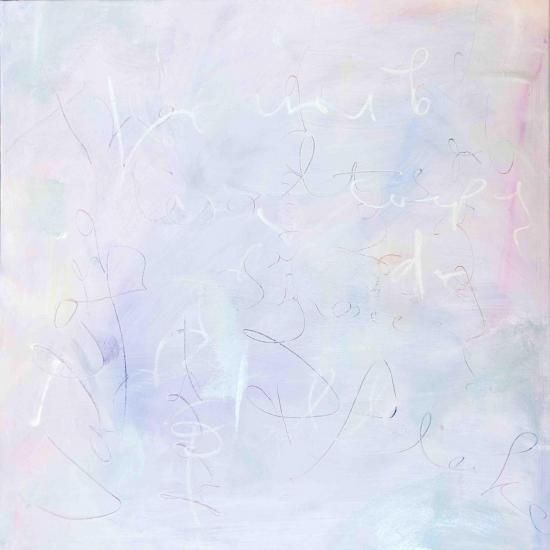 「Between the curtains #26」はバレエ公演「くるみ割り人形」の中でも、初演当時最も賞賛された第1幕最後のコールド(群舞)「雪片のワルツ」を題材とし、スクラッチの技法でキャンバス上に関連するワード・文字を描いています。